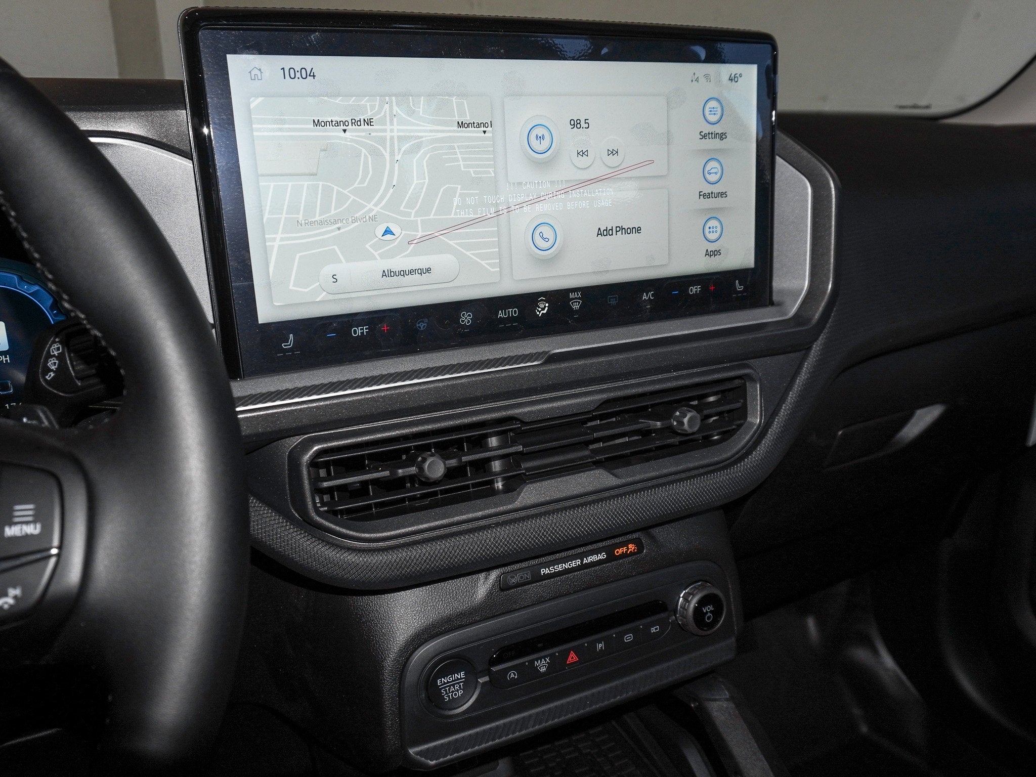 Inside, the Dark Space Gray leather trim keeps things clean and rugged, with rubberized flooring and cargo areas that laugh off mud, snow, spilled coffee, and whatever your dog drags in from the Bosque. Heated seats, a heated steering wheel, and a 13.2 inch SYNC 4 screen make every commute feel a little less like work and a little more like exploration.