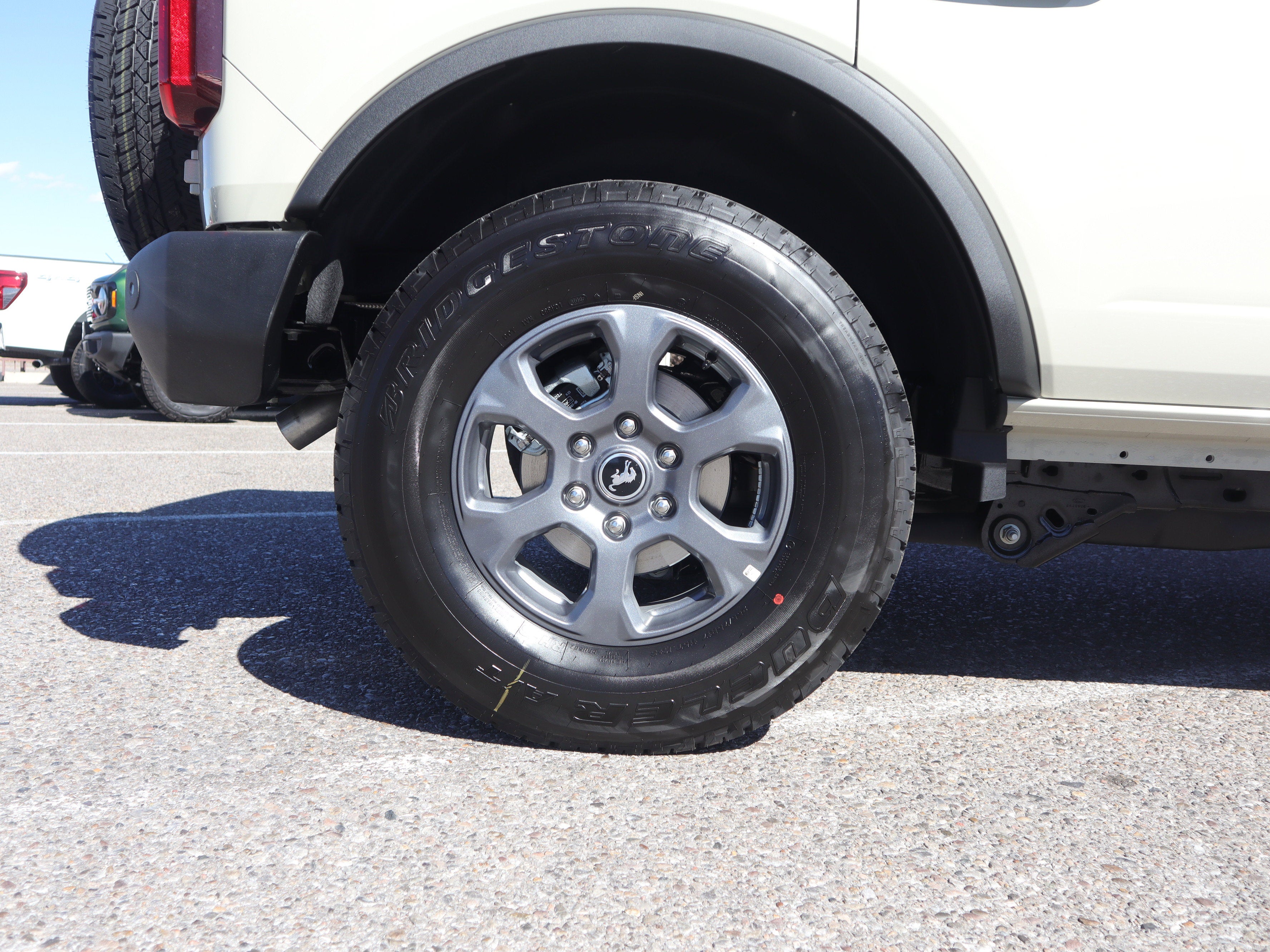 Under the hood, the 2.3L EcoBoost engine and 10 speed automatic deliver plenty of punch for climbing toward the Sandia Crest or exploring backroads near Jemez. Inside, gray and black cloth seats, carpeted flooring, and a leather wrapped steering wheel offer comfort without taking away the Broncos rugged personality.