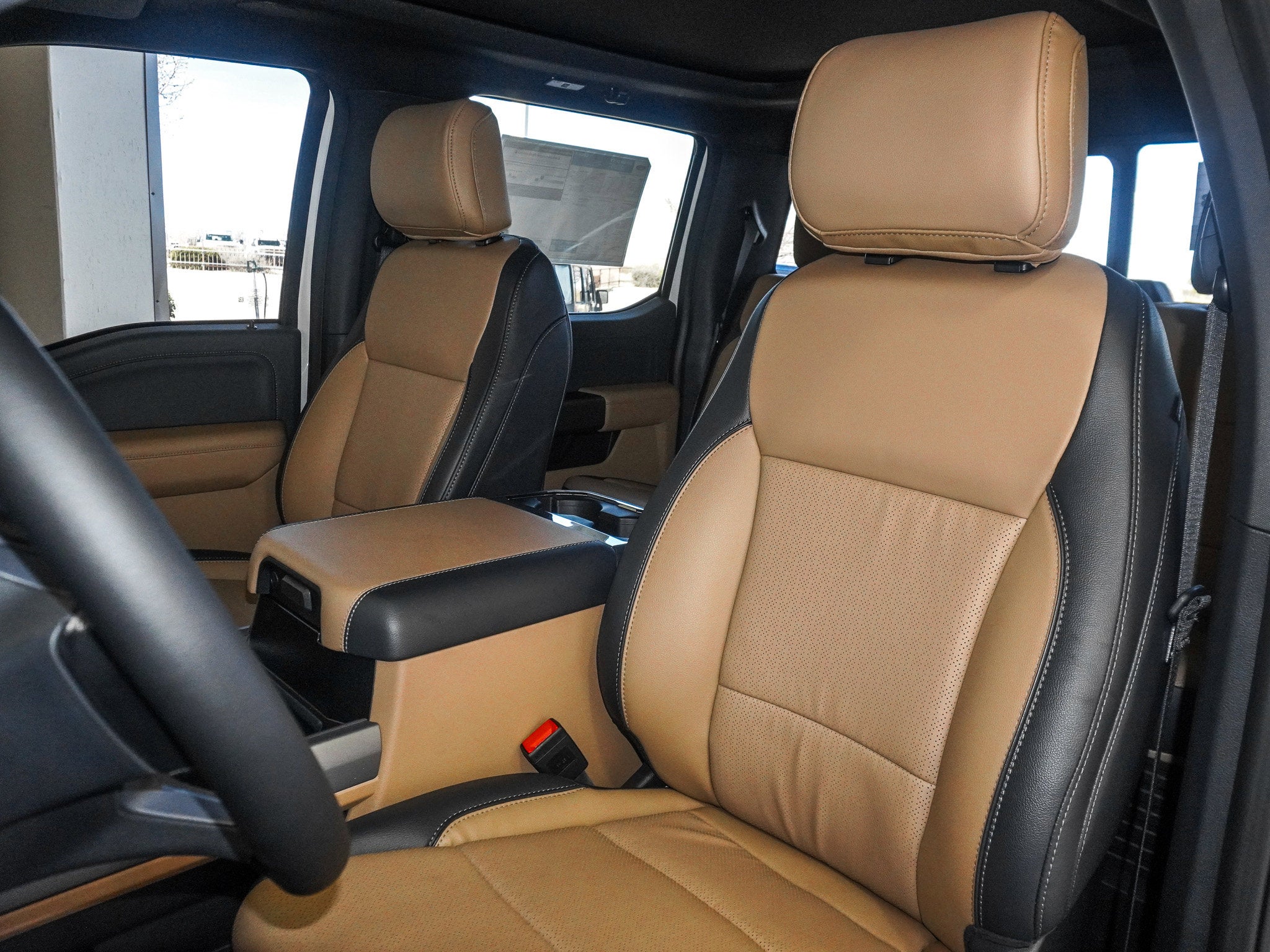 Inside, Baja ActiveX trimmed seats, heated and ventilated front seats, heated steering wheel, twin panel power moonroof, and dual zone climate control deliver first class comfort. The Lariat Ultimate and Premium Packages bring power running boards, tailgate step, power sliding rear window, B and O sound system, 360 degree camera, and SYNC 4 with a 12 inch screen to keep you connected and in command.