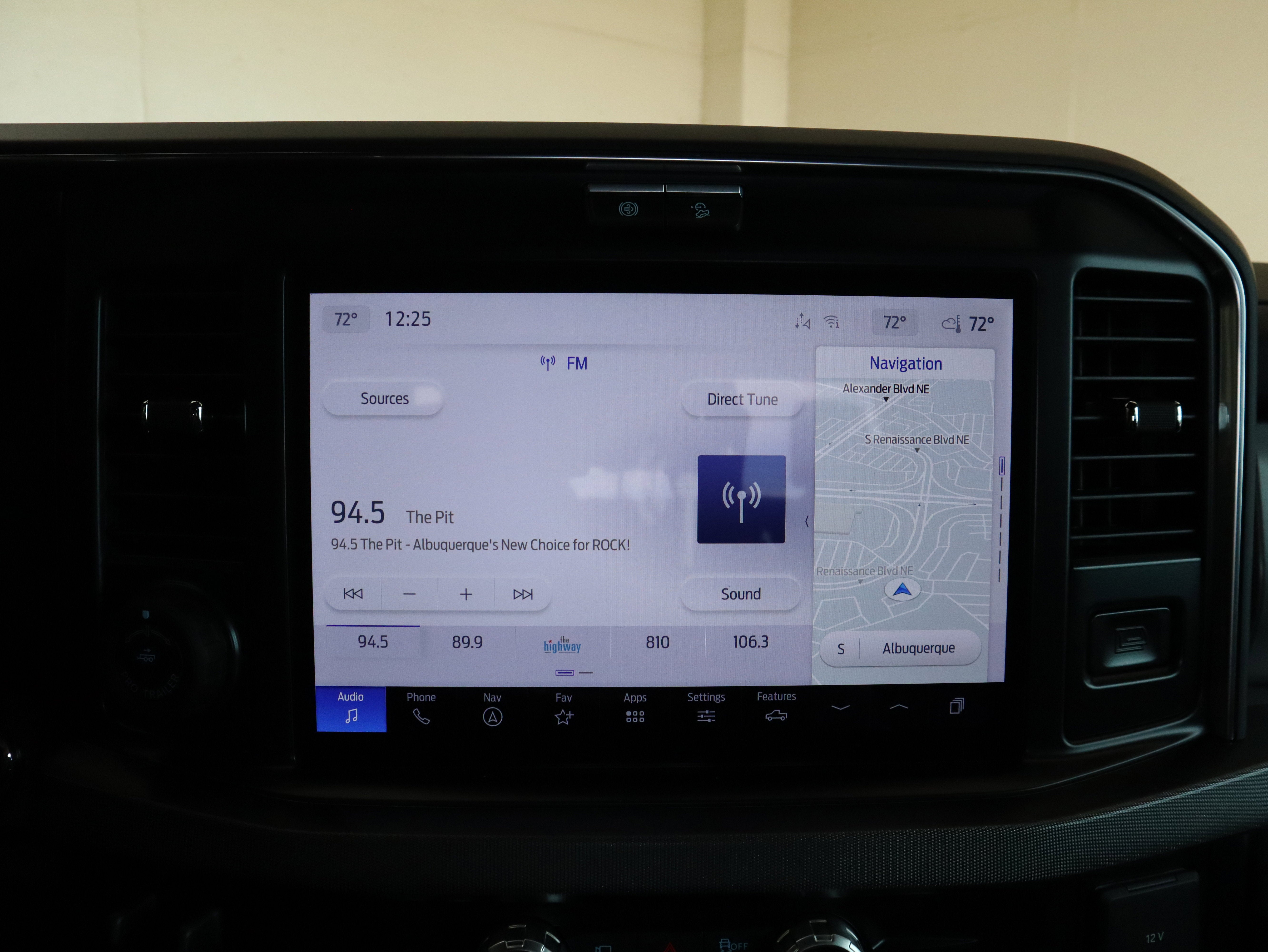 Inside, the cabin feels more like a luxury SUV than a work truck. Black Onyx Blue leather seating, a head up display, wireless charging, and a massive B and O Unleashed sound system create a premium experience. A 360 degree camera, adaptive cruise control, and Ford Co Pilot360 Assist 2.0 keep every drive smooth whether you are heading down I 25 or out toward the Sandias.
