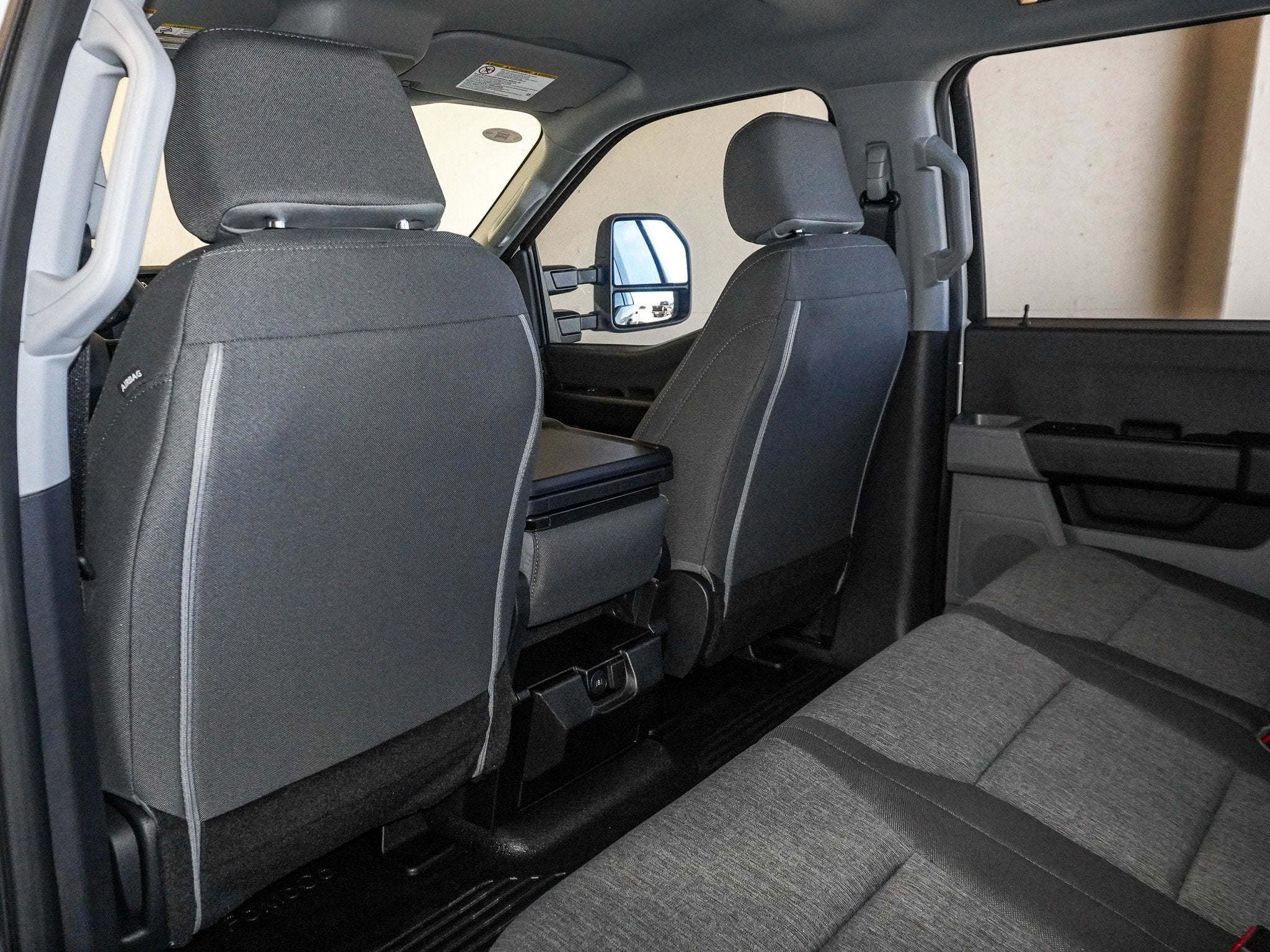 Inside, Medium Dark Slate cloth 40 20 40 seating adds comfort to capability. The XL Driver Assist Package, SYNC 4 with 8 inch screen, rear view camera, and interior work surface turn this cab into a mobile command center. Platform running boards and XL Chrome Package with fog lamps add a touch of style to this hard working rig.