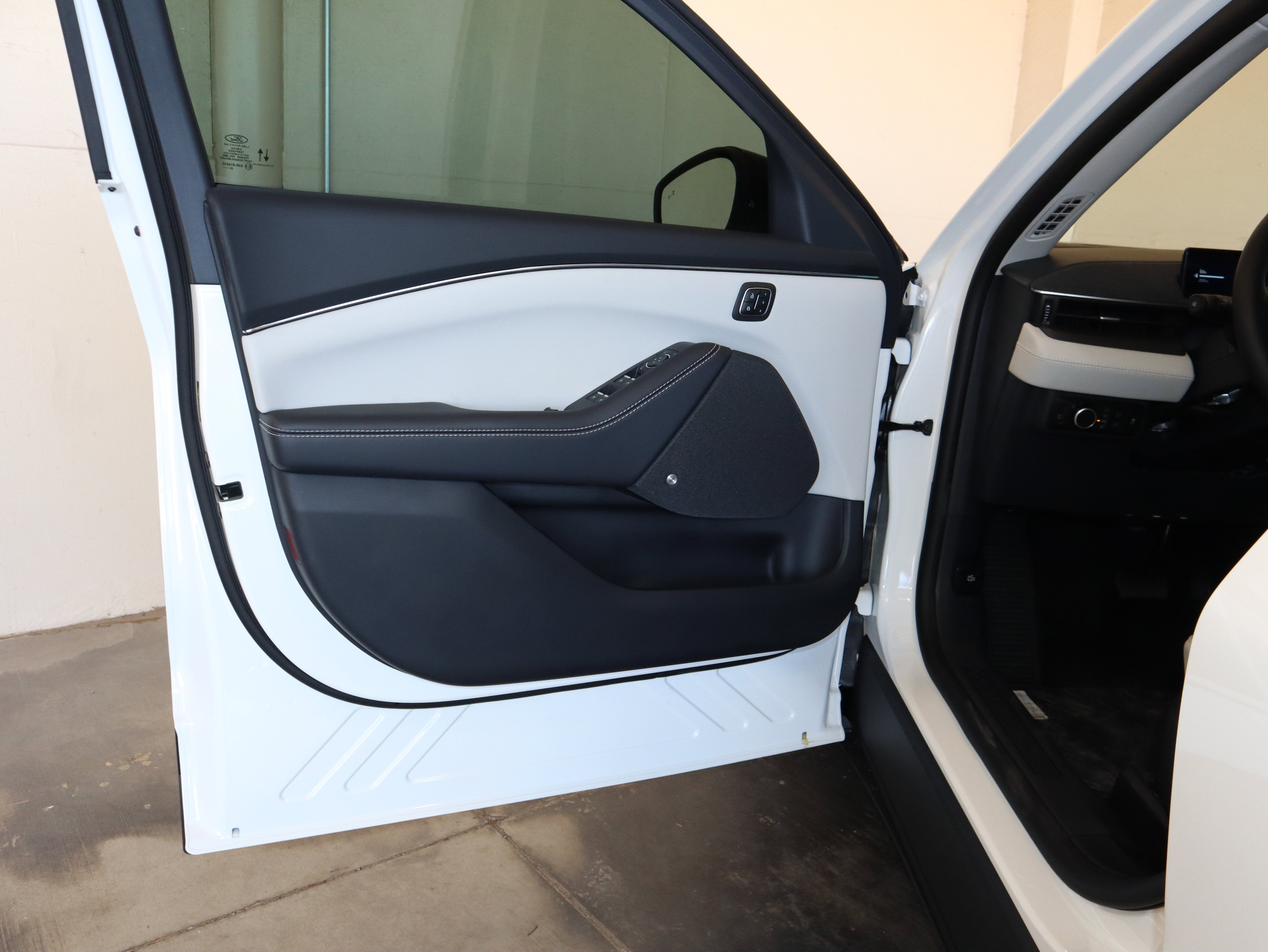 This Mach E Premium is loaded with upgrades including the panoramic roof package that floods the cabin with natural light and the Technology Package with BlueCruise hands free highway driving. The massive 15.5 inch touchscreen running SYNC 4A anchors the interior, while a crisp 10.2 inch digital cluster keeps key driving info front and center.