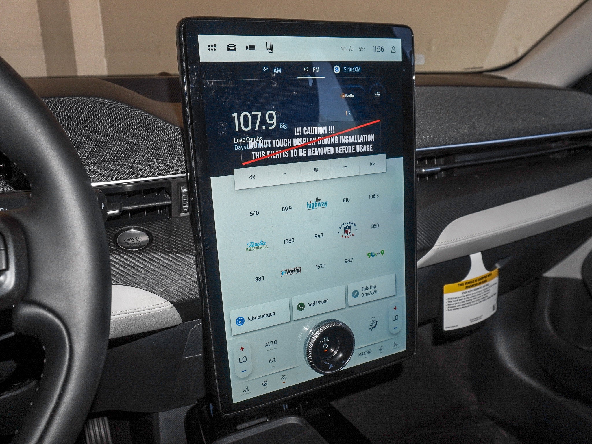 Inside, the Light Gray perforated ActiveX interior feels modern and airy, anchored by a massive 15.5 inch center touchscreen, digital cluster, heated and ventilated front seats, and a panoramic glass roof that lets in those famous New Mexico skies. BlueCruise hands free driving, a 360 degree camera, and the Technology Package add brains to the beauty, while the front trunk gives you bonus storage for groceries or road trip gear.